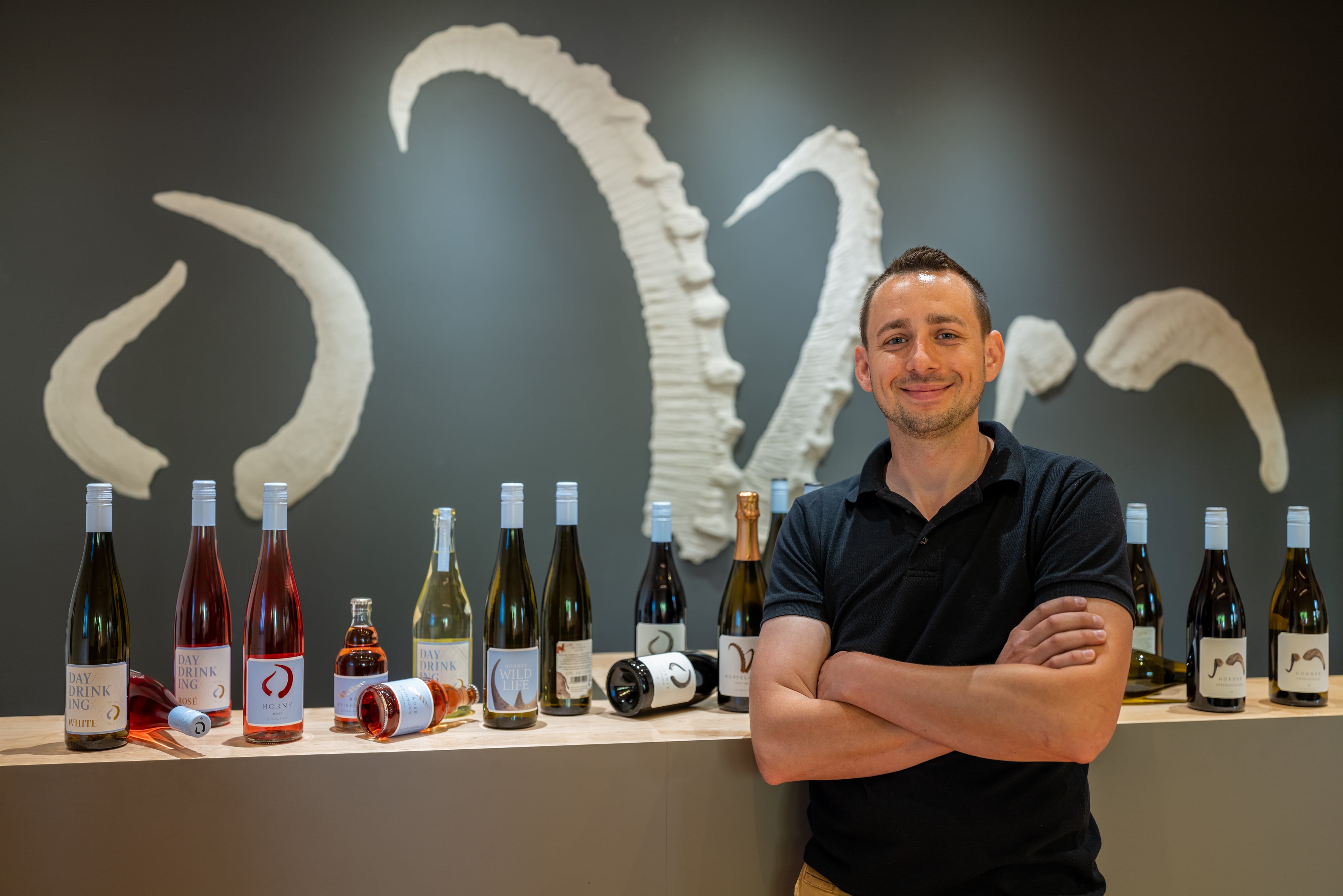 父子で紡ぐヘルナーワイナリーのエンブレムは“角”。彼らが手掛けるワインは、角をもつ3つの星座をイメージし、3つのランクに分かれている。エントリークラスには牡牛座の角、スタンダードクラスには山羊座の角、ハイクラスには牡羊座の角がラベルにそれぞれ描かれている。