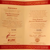 希少なバッカスのべーレンアウスレーゼ。完熟または貴腐葡萄を一粒一粒手作業で選別し、丁寧に圧搾して熟成させて造られた甘口白ワイン。1500本限定生産です。